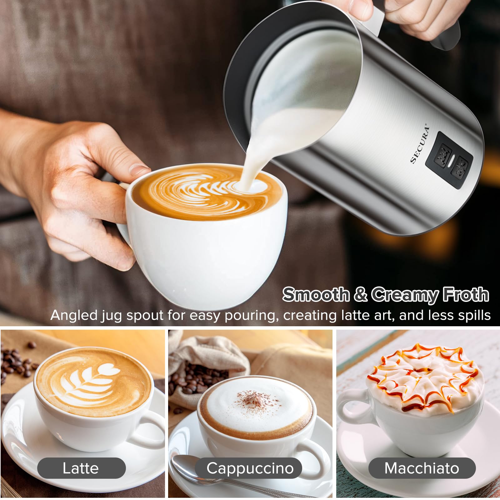 Secura Electric Milk Frother, Automatic Milk Steamer Warm or Cold Foam Maker for Coffee, Cappuccino, Latte, Stainless Steel Milk Warmer with Strix Temperature Controls