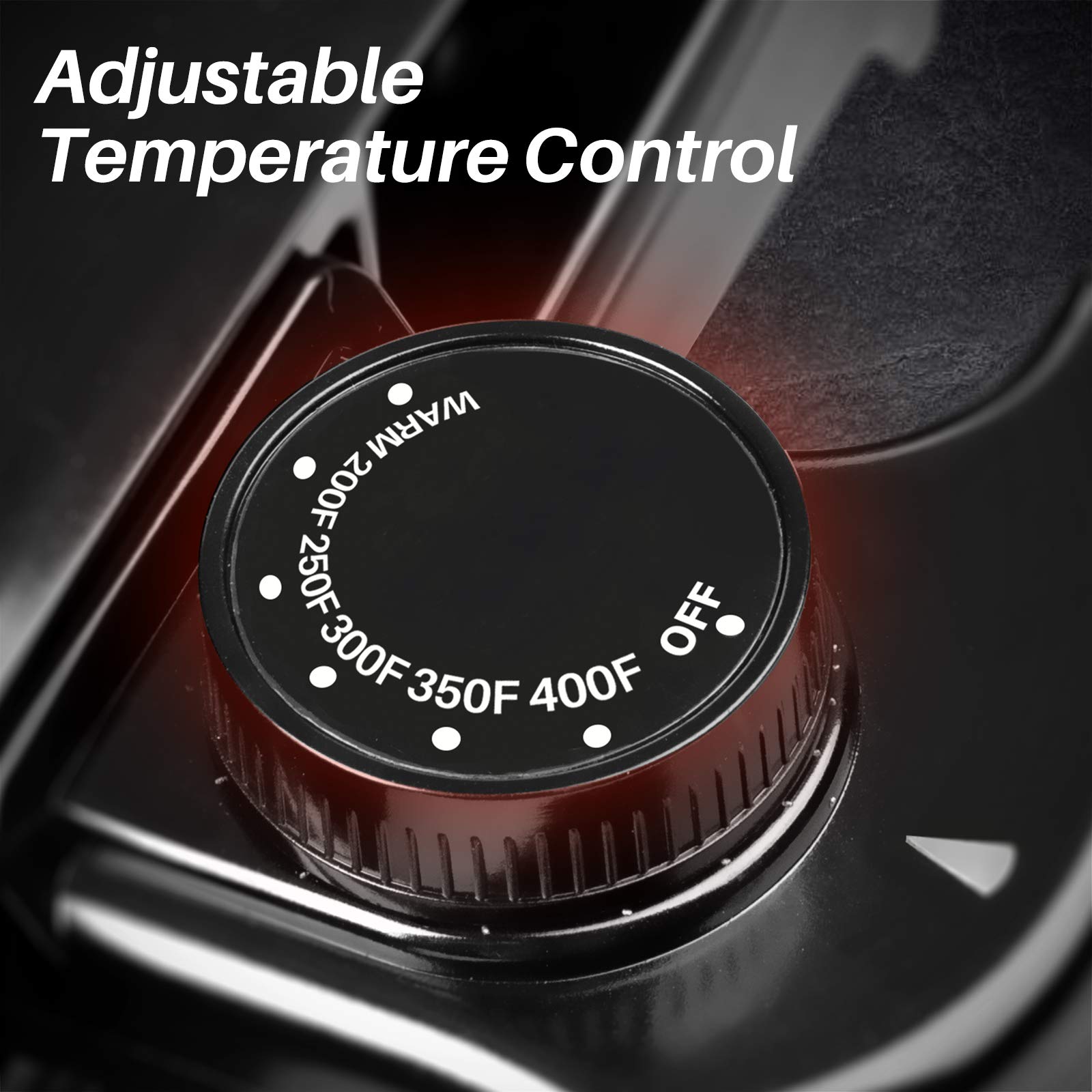 - Cool-touch handles and housing. Removable adjustable thermostat control. Heating indicator light. Product measurements: 20-1/4